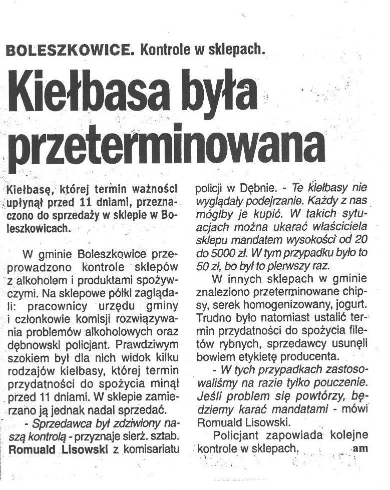 Kiełbasa była przeterminowana:
