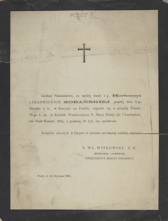 [Nekrolog. Incipit:] Żałobne nabożeństwo [...] ś. p. Hortensyi z Jełowickich Sobańskiej [...]