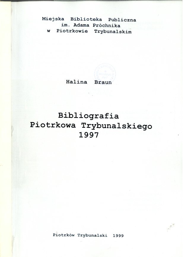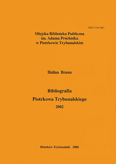 | Inne tytuły: | Bibliografia Piotrkowa Trybunalskiego 2004 Bibliografia Piotrkowa Trybunalskiego 2005 Bibliografia Piotrkowa Trybunalskiego 2000 Bibliografia Piotrkowa Trybunalskiego 2001 Bibliografia Piotrkowa Trybunalskiego 2002 Bibliografia Piotrkowa Trybunalskiego 2003 Bibliografia Piotrkowa Trybunalskiego 1999 Bibliografia Piotrkowa Trybunalskiego 1998 |