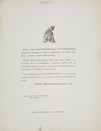 [Nekrolog. Incipit] Marya z Xiążąt Czartoryskich Xiężna Würtemberska przeszła do wieczności [...]