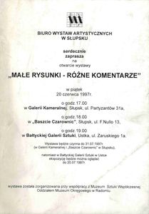 [Galeria Kameralna, "Baszta Czarownic", Słupsk - 20 czerwca - 31 lipca 1997, Bałtycka Galeria Sztuki, Ustka - 20 czerwca - 20 lipca 1997]