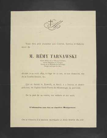 [Nekrolog. Incipit] Ś. P. Remigiusz Tarnawski b. Naczelnik Województwa Kaliskiego, Naczelnik miasta Piotrkowa w 1863 r. [...]