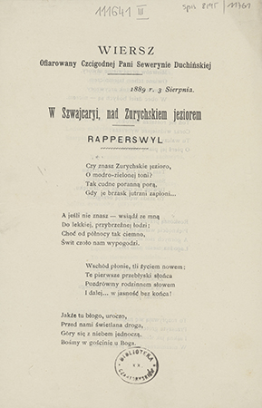 Wiersz ofiarowany czcigodnej Pani Sewerynie Duchińskiej