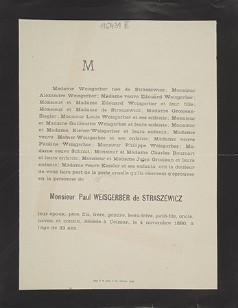 [Nekrolog. Incipit] M Madame Weisgerber née de Straszewicz [...] Monsieur Paul Weisgerber de Straszéwicz leur époux [...]