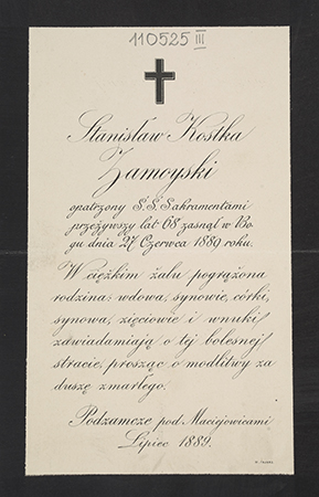 [Nekrolog. Incipit] Stanisław Kostka Zamoyski opatrzony [...]