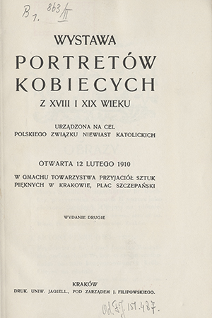 urządzona na cel Polskiego Związku Niewiast Katolickich otwarta 12 lutego 1910 w gmachu Towarzystwa Przyjaciół Sztuk Pięknych w Krakowie, Plac Szczepański