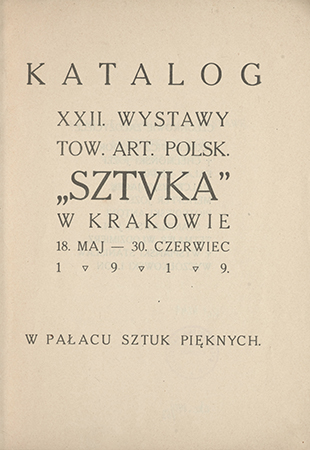 Katalog XXII. wystawy Towarzystwa Artystów Polskich "Sztuka" w Krakowie: