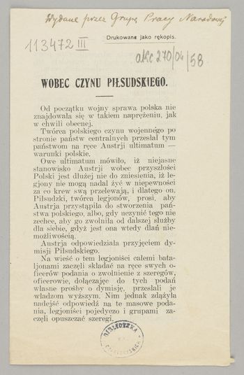 Wobec czynu Piłsudskiego: