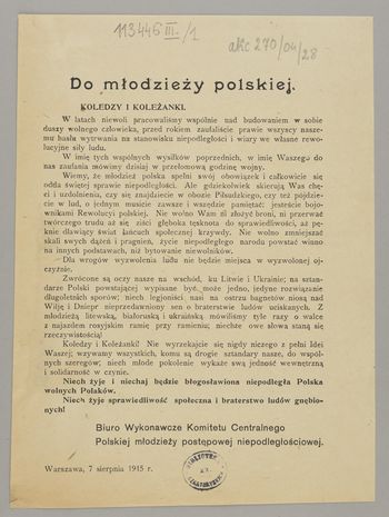 | Instytucja sprawcza: | Polska Młodzież Niepodległościowa - Biuro Wykonawcze Komitetu Centralnego |