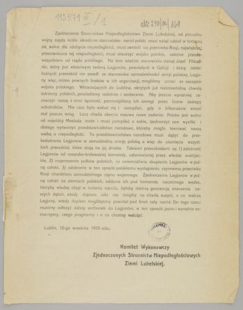 | Instytucja sprawcza: | Komitet Wykonawczy Zjednoczonych Stronnictw Niepodległościowych Ziemi Lubelskiej |