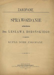 Sprawozdanie adwokata Dra Lesława Borońskiego w sprawie kupna dóbr Zakopane