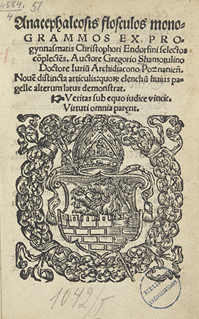 Anacephaleosis flosculos monogrammos ex progynnasmatis Christophori Endorfini [Hegendorphini] selectos cõplectes