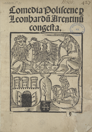 Comedia Poliscene p[er]...congesta |[na końcu] Comedia Poliscene Leonhardi Arentini poete comici explicit feliciter