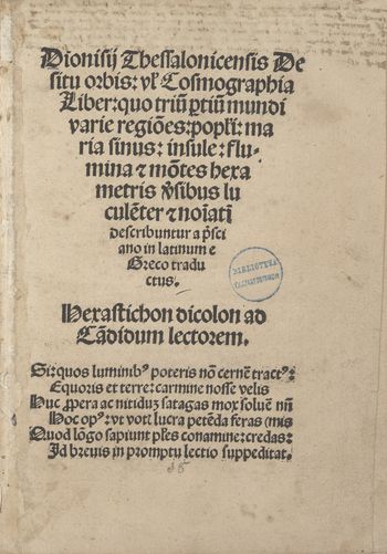 Dionisij Thessalonicensis De situ orbis:vl Cosmographia...