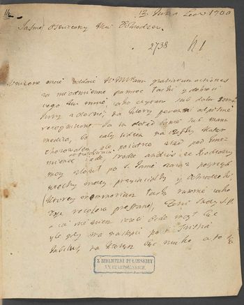 Korespondencja róznych osósb do różnych m.in. do Elżbiety Sieniawskiej, Adama Mikołaja Sieniawskiego hetm. w. kor., kaszt. krak