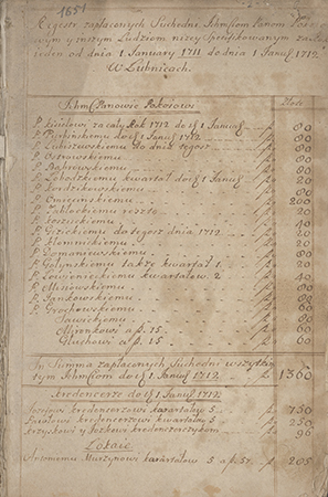 [Adam Mikołaj i Elżbieta Sieniawscy]. Regestr zapłaconych suchedni [..] panom pokojowym i inszym ludziom niżej specyfikowanym […] [w Jarosławiu, Laszkach, Lwowie, Łęcznej, Łubnicach, Puławach]