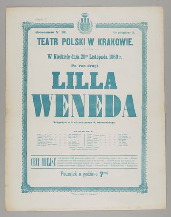 | Inne tytuły: | Po raz pierwszy Lilla Weneda Tragedya w 5 aktach przez J. Słowackiego |