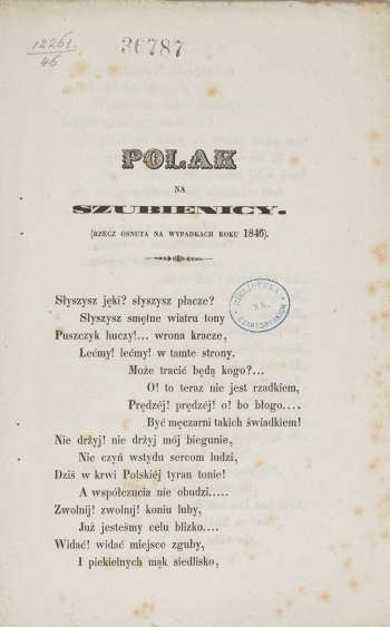 | Inne tytuły: | (rzecz osnuta na wypadkach toku 1846) Kraków dnia 13 czerwca 1848 r |