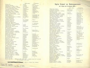 Spis gości w Zakopanem: