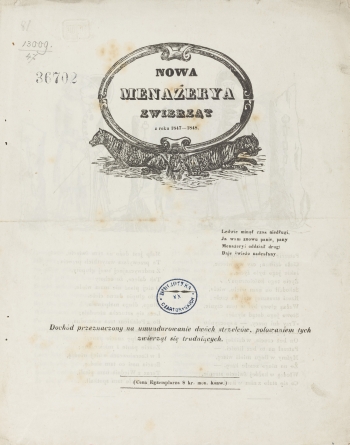 Nowa Menażerya zwierząt z roku 1847-1848:
