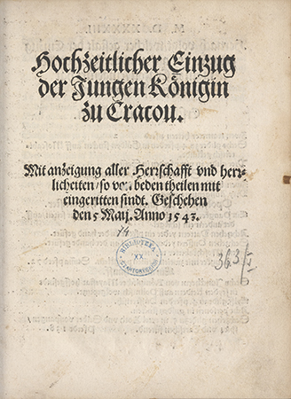 Hochzeitlicher Einzug der Jungen Königin zu Cracou. Mit anzeigung aller Herrschafft und herrlicheiten so beden theilen mit eingeritten sindt. Geschehen den 5 Maij. Anno 1543