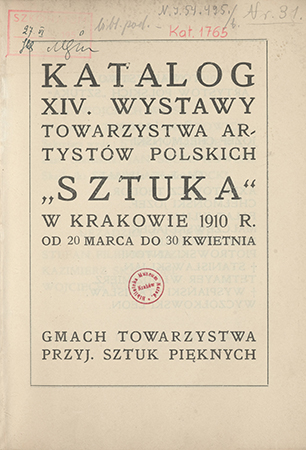 | Inne tytuły: | "Sztuka" 1910 Katalog czternastej wystawy Towarzystwa Artystów Polskich "Sztuka" w Krakowie |