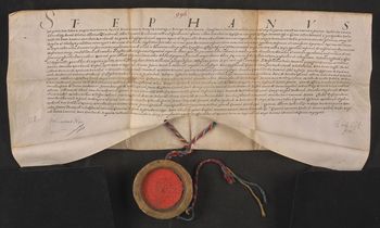 Stefan król polski na prośbę Stanisława Karnkowskiego arcybiskupa gnieźnieńskiego zatwierdza darowiznę wsi Lęgniszewo, uczynioną przez Wojciecha Zajączkowskiego opata klasztoru wągrowieckiego, na rzecz Kolegium Jezuitów w Poznaniu