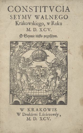 | Inne tytuły: | Konstytucja sejmu walnego krakowskiego z dn. 20 marca 1595 r Konstytucje (Sejm ; 1595) |