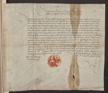 Zygmunt August król polski potwierdza przedstawiony mu przez rajców chęcińskich dekret króla Zygmunta I wydany 4 IV 1508 r. w sporze między kasztelanem wiślickim Piotrem Szafrańcem z Pieskowej Skały a mieszkańcami chęcińskimi o płacenie cła za woły pędzone przez Przedbórz i inne miejscowości