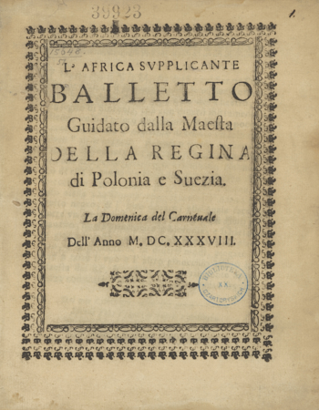 | Inne tytuły: | Balletto guidato dalla Maesta della Regina di Polonia e Suezia La Domenica del Carnevale dell'Anno M. DC. XXXVIII |
