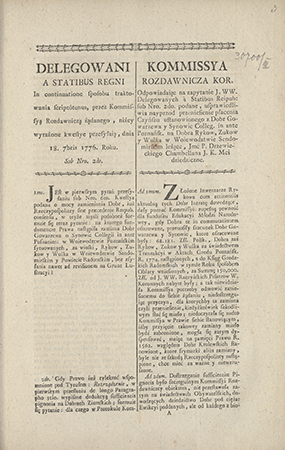 | Instytucje sprawcze: | Polska - Deputacja do Egzaminowania Rachunków Komisji Edukacji Narodowej Rozdawniczych i Sądowych Obojga Narodów Polska - Komisja Rozdawnicza Koronna Polska - Sejm |
