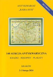 | Inne tytuły: | 140/2024 2-3 lutego 2024 książki, rękopisy, plakaty 140 aukcja antykwaryczna "Rara Avis" Sto czterdziesta aukcja antykwaryczna |