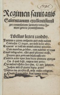 Regimen sanitatis Galernitanum excellentissimu[m] pro conuersatione sanitatis totius humani generis perutissimum