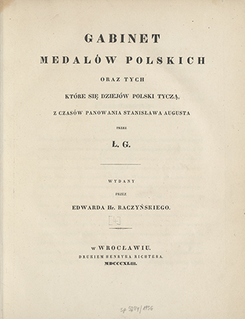 | Inne tytuły: | Gabinet medalów polskich oraz tych, które się dziejów Polski tyczą z czasów panowania Stanisława Augusta [4/2, |