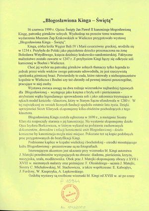 "Błogosławiona Kinga - Świętą":