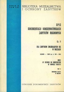 | Inne tytuły: | Dla zabytków znajdujących się w muzeach. [T. 3] Nieborów, Toruń (poz. nr 1801-2566) Biblioteka Muzealnictwa i Ochrony Zabytków Index of records on conservation of movable objects Spis dokumentacji konserwatorskich zabytków ruchomych Cz. 2 Dla zabytków znajdujących się w muzeach. |