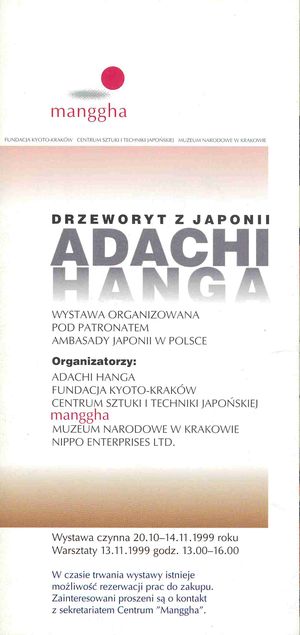 | Inne tytuły: | drzeworyt z Japonii wystawa czynna 20. 10. - 14. 11. 1999 roku [w Centrum Sztuki i Techniki Japońskiej "Manggha" w Krakowie] |