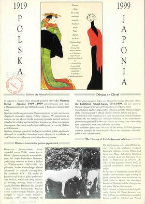 | Inne tytuły: | 20 stycznia - 25 lutego 2000 r. - Muzeum Literatury im. A. Mickiewicza, Warszawa oraz 6 - 31 marca 2000 r. - Centrum Sztuki i Techniki Japońskiej "Manggha", Kraków wystawa z okazji 80 rocznicy nawiązania stosunków oficjalnych między Polską a Japonią oraz Roku Chopinowskiego |
