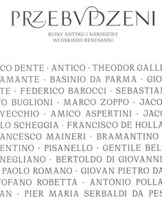 | Inne tytuły: | ruiny antyku i narodziny włoskiego renesansu "Lo sguardo malinconico nascosto". Nowe ustalenia na podstawie badań nad "Sądem Parysa" Sandra Botticellego "Ślad" Mantegni w śnie o antyku. Nieusuwalny znak, który miał wiecznie trwać Andrea Mantegna jako twórca rycin Antyk w XV-wiecznych rysunkach i szkicownikach Groteski. O obiegu wzorów dekoracyjnych i powtarzalności losu Muzyka Orfeusza, Ficino i "theologia platonica" Perugino - klasyk i klasycysta? Początki medalierstwa i imitacje monet antycznych w renesansie Przebudzenie ze snu o antyku - onirologiczny przewodnik po wystawie Starożytności i lud rzymski pod koniec XV w. Znaczenie donacji Sykstusa IV Słowo wstępne |