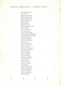 | Inne tytuły: | 1980 Stanisław Balewicz, Jerzy Bereś, Tadeusz Brzozowski, Barbara Buczkówna, Marek Chołoniewski, Wanda Czełkowska, Julian Jończyk, Jerzy Kałucki, Tadeusz Kantor, Maria Kantor-Stangret, Adam Kotula, Andrzej Kowalski, Piotr Krakowski, Wojciech Krakowski, Janina Kraupe-Świderska, Anna Maciejasz-Kamińska, Adam Marczyński, Jadwiga Maziarska, Kazimierz Mikulski, Daniel Mróz, Jerzy Nowosielski, Andrzej Pawłowski, Marek Piasecki, Maria Pinińska-Bereś, Mieczysław Porębski, Karol Pustelnik, Erna Rosenstein, Teresa Rudowicz, Artur Sandauer, Bogusław Schaffer, Jerzy Skarżyński, Jonasz Stern, Wojciech Sztaba, Janusz Tarabuła, Jan Tarasin, Jerzy Tchórzewski, Danuta Urbanowicz, Witold Urbanowicz, Adam Walaciński, Marian Warzecha, Jerzy Wroński |