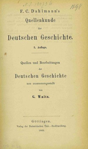 F. C. Dahlmann's Quellenkunde der deutschen Geschichte: