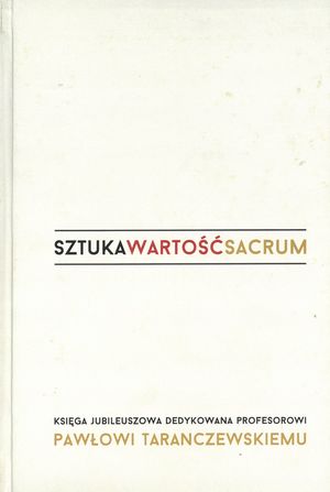| Inne tytuły: | księga jubileuszowa dedykowana profesorowi Pawłowi Taranczewskiemu "Akt pejzażu" "Don't hinder the strong, assist the week" - reminiscences of Prof. Taranczewski's seminar "Drżące bródki płaczących aniołków" "Mocnym nie przeszkadzać, słabym dopomóc" - wspomnienia z seminarium prof. Pawła Taranczewskiego "Nude landscape" "Poeci [polscy] uśmiechają się rzadko - prawie nigdy" "Trembling chins of crying angels" "[Polish] poets rarely, if ever, smile" A few words about the painting of Paweł Taranczewski Architektoniczne sacrum i profanum - czyli o świątyni i jej sakralności raz jeszcze Benedict from Basztowa street Benedykt z ulicy Basztowej Bóg i człowiek: między posłuszeństwem a bliskością Different art, same art Eastern Christian tradition in the works of Thomas Merton Edith Stein - mistyczna ofiara Holocaustu Edith Stein - the mystical Holocaust victim Ekstaza Świętego Franciszka El Greca Epistemological aspects of experiencing transcendent beauty Epistemologiczne aspekty doświadczenia piękna transcendentalnego Everyday passion From music in the temple to the temple of music God and man: between obedience and proximity Gold as a medium of artistic expression and experiencing gold Homo idiot, about conversion Homo idiota, czyli o nawróceniu Kilka refleksji na temat sacrum w muzyce Kilka słów o malarstwie Pawła Taranczewskiego Od muzyki w świątyni do świątyni muzyki (z obszerną dygresją na temat mistrza muzycznych ceremonii) Orderliness in the drawings of Paweł Taranczewski Pasja dnia powszedniego Paweł Taranczewski Poetry in the painting of Paweł Taranczewski Poetyka obrazów Pawła Taranczewskiego Polychromiestreit oder Paragoneproblem? Porządek rysunków Pawła Taranczewskiego Sacrum i etyka w teatrze na przykładzie Miłosierdzia i Strasznych dzieci Karola Huberta Rostworowskiego Several remarks on the sacred in music Spring poems of Jan Zahradnik Sztuka inna, sztuka ta sama The Ecstasy of St. Francis by El Greco The sacred and ethics in theatre on the example of Mercy and Hollow children by Karol Hubert Rostworowski The sacred and the profane in architecture - on the temple and its sacral qualities once again Tradycja wchodniochrześcijańska w twórczości Thomasa Mertona Venetians in the Louvre Wenecjanie w Luwrze Wiosenne wiersze Jana Zahradnika Władysław Strzemiński - artysta i pedagog Władysław Strzemiński - the artist and the teacher Złoto jako środek artystycznego wyrazu a doświadczenie Boga |