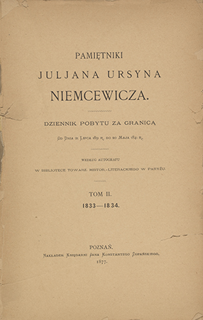 | Inne tytuły: | 1833-1834 Pamiętniki Juljana Ursyna Niemcewicza T. 2, |