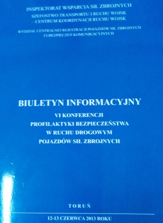 Biuletyn informacyjny VI Konferencji Profilaktyki Bezpieczeństwa w Ruchu Drogowym Pojazdów Sił Zbrojnych