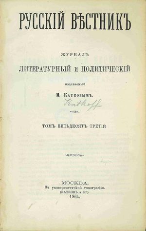 | Wydawcy: | v Tipografìi T. Volkova i Komp (1856) Mihail Nikiforovič Katkov Tipografiâ T. Volkova i Kompanii |
