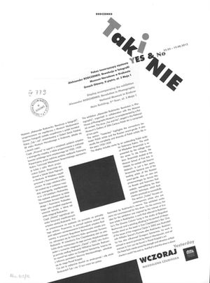 | Inne tytuły: | Muzeum Narodowe w Krakowie, Gmach Główny II piętro, 22.05. - 19.08.2012 pokaz towarzyszący wystawie "Aleksander Rodczenko. Rewolucja w fotografii" National Museum in Krakow, Main Bulding 2nd floor, 22.05. - 19.08.2012 Yes & no - yesterday display accampanying the exhibition "Alexander Rodchenko. Revolution in Photography" |