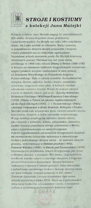 Stroje i kostiumy z kolekcji Jana Matejki:
