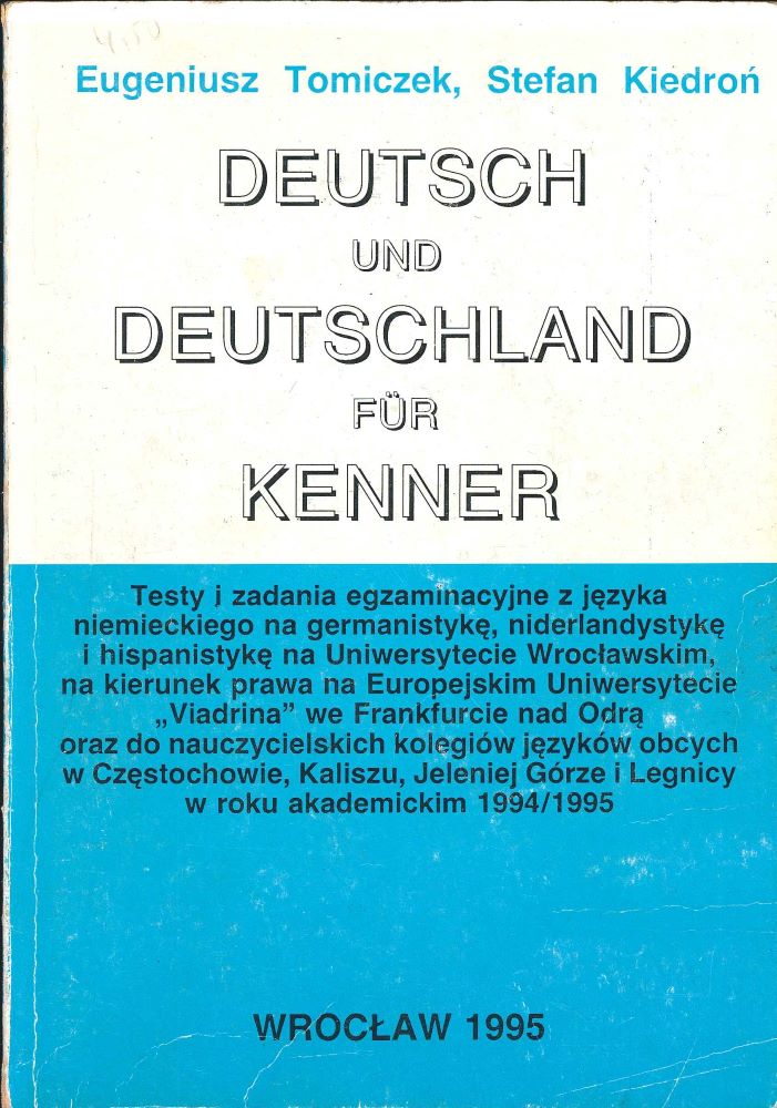 teksty i zadania egzaminacyjne z języka niemieckiego na germanistykę, niderlandystykę i hispanistykę na Uniwersytecie Wrocławskim, na kierunekprawa na Europejskim Uniwersytecie "Viadrina" we Frankfurcie nad Odrą oraz dla nauczycielskich kolegiów językóów obcych w Częstochowie, Kaliszu, Jeleniej Górze i Legnicyw roku akademickim 1994/1995