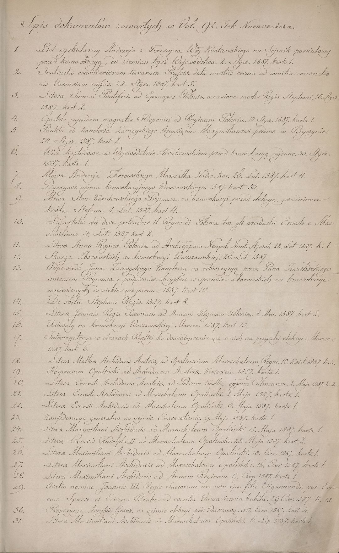 Teka Naruszewicza. Odpisy 134 dokumentów z 1587 r.