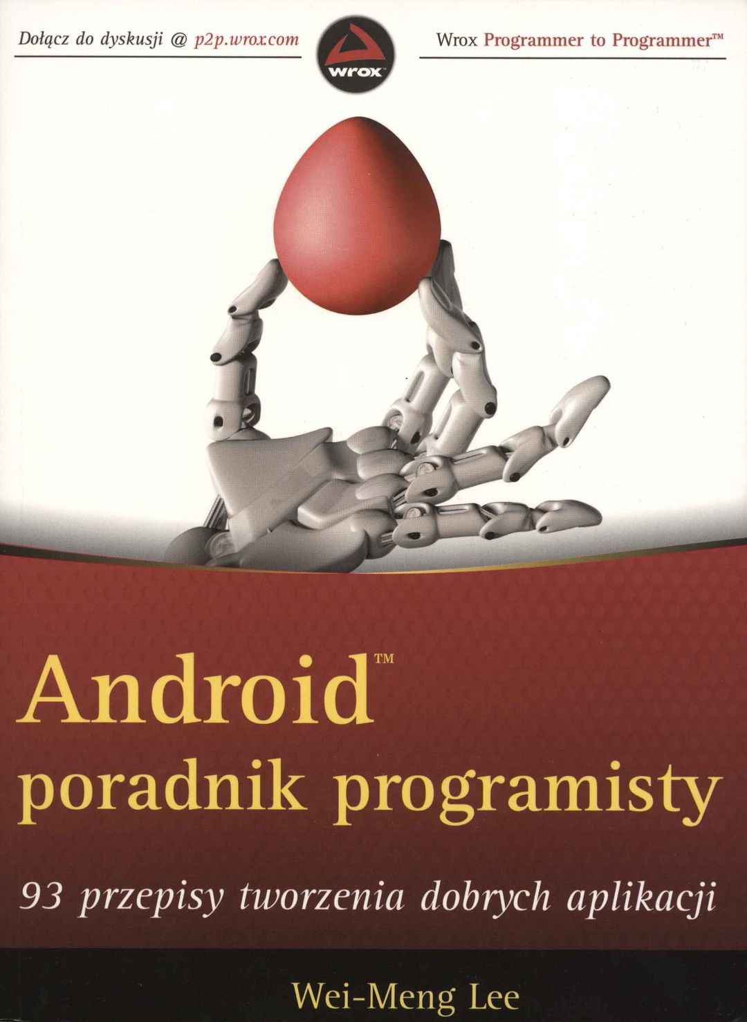 Zbiór gotowych do użycia, unikatowych przepisówTen, obejmujący wiele wersji systemu Android aż do wersji Android 4.1, wyczerpujący zbiór to zestaw obowiąz-kowy dla zarówno zaawansowanych, jak i początkujących programistów. Każdy rozdział zawiera rozmaite przepisy i wskazówki, które rozwiązują typowe, codzienne wyzwania. Każdy przepis zawiera omówienie problemu i propo-nowane rozwiązania wraz z dostosowywalnym, samodzielnym plikiem projektu ilustrującym jego zastosowanie.Oto kilka pomocnych przepisów, które znajdziesz w książce Android - poradnik programisty:Podstawy systemu AndroidProgramowe rejestrowanie odbiorników komunikatów, samoczynne uruchamianie aplikacji podczas rozruchu, wywoływanie wbudowanych aplikacji, umożliwianie wywoływania aplikacji przez inne elementyInterfejs użytkownika, widoki i listyImplementacja systemu oceniania, ładowanie zawartości z folderu Assets, wyświetlanie menu kontekstowych, okien dialogowych, stronicowanie treści, dostosowywanie widoku listy, animowanie i zmienianie obrazów za pomocą ImageSwitcherTelefonia, wiadomości i siećBlokowanie połączeń wychodzących, automatyczne odpowiadanie, odczytywanie numeru telefonu, IMEI i identyfikatora SIM, monitoring wysyłanych wiadomości SMS, przechwytywanie przychodzących wiadomości, odczytywanie usług Web XML, tworzenie serwera i klienta gniazd, obsługa Bluetooth, wyszukiwanie adresu poprzez odwrotne geokodowanie i vice versaUsługi oparte na lokalizacjiUstalanie położenia geograficznego poprzez GPS lub triangulację sieci komórkowej, rejestrowanie położenia, wykonywanie zdjęć, włączanie lampy błyskowej, odczytywanie kodów paskowychPrzechowywanie danychZapisywanie i ładowanie preferencji, tworzenie ekranu preferencji, zapisywanie plików w różnych lokalizacjach, dołączanie plików do projektuWei-Meng Lee jest założycielem firmy Developer Learning Solutions (www.learn2develop.net), zajmującej się praktycznymi szkoleniami w zakresie najnowszych technologii firm Microsoft i Apple. Jest autorem wielu publikacji online oraz książek Beginning Android 4 Application Development i Beginning iOS 5 Application Development.wrox.comForum programistówDołącz do naszego forum Programmer to Programmer, aby zadać pytania dotyczące tej książki (i nie tylko), podyskutować na najbardziej gorące tematy branżowe i poznać kolegów-programistów z całego świata.Kod do pobraniaWykorzystaj przykładowy kod do tej książki, jak również przykłady z wielu innych publikacji - wszystkie gotowe do użycia.